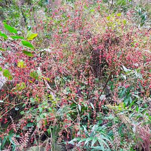 夏に何度も行った場所なのに、他の植物や自らの葉に隠れて花が咲いていることに気が付かなかったけど、 【ハダカホオズキ】 の群生地発見! 周りの草が枯れて、赤い実が目立ち、こんなにいっぱい隠れてたんだ!と藪の奥まで見渡せます。