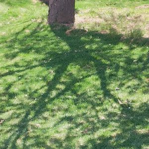 ブラシノキ 3/27 am7:32 快晴 常緑のブラシノキ 🎄 斜め↗から朝日が 当たり 車庫に出来たシルエット です 左側 実物 右側 影絵 🎄🎄 さあ~♪☀草取りだ⤴️