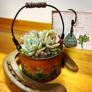 先週末♡ イベントを覗かせてもらって🍀 素敵な寄せ植えGETしてきたよ😊💕 シアワセくんの可愛いリメ缶 kyirkちゃんの寄せ植え 癒されるね😆💕