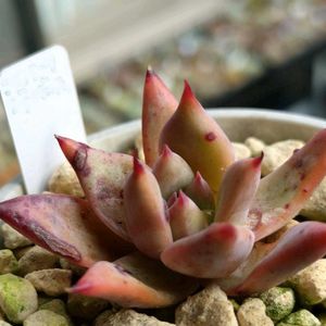他のエケベリアと同じ様にまだ外に出しているのに、このトップシータービーは赤く色付きません。むしろ青ざめた感じです😅
