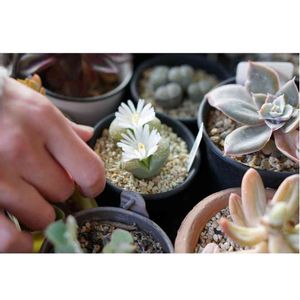 リトープス 植え替え! 買ったときのまま育てていたけれど、水はけが悪いことがどうしても気になって、冬になる前に植え替えました💦 他のコが花が咲かせている様子を見て焦るけど、元気でいてくれたらいいかな(⌒-⌒; )