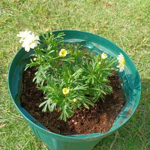 ボンザマーガレット植え付けから3週間後の様子です。 だんだん咲き進んできました、まだまだツボミもあるので楽しみです♪
