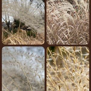 オギ🌾 綺麗な銀白色🤍 陽に当たるとキラキラ銀色に輝いて絹糸のよう✨✨ うちには大型のイネ科植物も色々あります🌾 ススキ、ムラサキススキ、オギ、ヨシと揃ってます😆