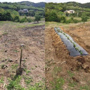 サツマイモを植えてみた。 サツマイモは荒地でも問題無く育つので、土作りすっとばかして、いきなり定植😁 ここに道を通す予定だけど、まだ構想段階だから、今年は畑にしちゃった😉 耕耘機壊れたからスコップで掘り起こした😅 一日仕事になった… 新しいの買いたいけど、16万だって😵💫
