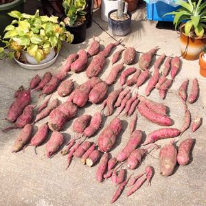 庭の菜園で育てた安納芋を収穫しました🍠 所々虫に齧られていますが意外と大きいイモもできていて満足😃 これも一種の塊根植物w!?