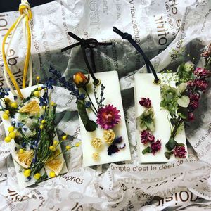 "アロマサシェ作り" ハーバリウムに続き、最近ジワジワと人気が出ているアロマサシェ作りに挑戦✨✨ 溶かしたロウに精油を混ぜて型に流し、固まりかけたらドライフラワーなどを乗せます。 お部屋やトイレ、玄関などに飾って香りを楽しむアイテムです😊 タグも手作りです💖 今週末のフリマに出品します。