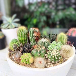 ほとんどが100均サボテン🌵 全部纏めて寄せ直し🎶 ベビーサンローズも 咲いてきました🌼