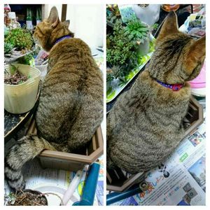 んもぅ〜(;・ω・)💦 🌱植え替えしようと 準備してたのに・・・😓 🐱ドゥラちゃん❤️ 入っちゃったぁ(/≧◇≦\)💦 相変わらずだぁ〜(ゝω・´★)💗