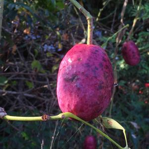 道沿いの桜の木に巻きついてぶら下がってました。 jijiさんから名前を「ムベ」と教えていただきました♪ ありがとうございました😊