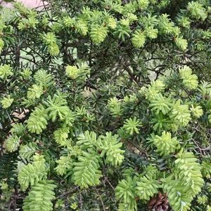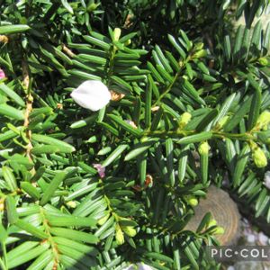 うちの庭にある木です。 小さなまつぼっくりが出来ます。誰か名前を教えてください!