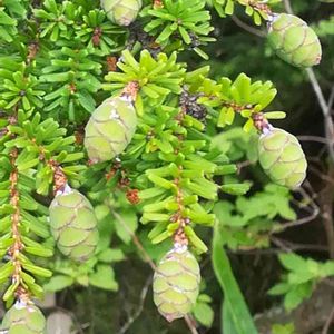 ゆっちさまより、ツガと教えていただきました。 実家の裏の木 葉っぱはトガ(イチイ)の仲間だと思うけど 私が生まれた時にはもうあって ウチでは「裏の木」と呼んでいる 他所で見たことが無いんだよね 直径2センチの小さい可愛い 松ぼっくりが出来て ウチにいる頃は手芸の材料にしたものだわ 松ぼっくりは去年の物 緑の実はこれから松ぼっくりになる 今年もたくさん出来そう🥰 ね、可愛いでしょう💕