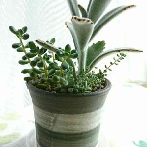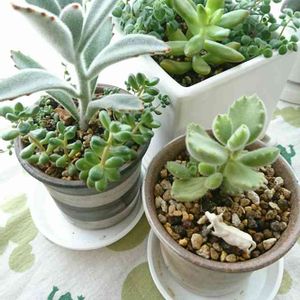 セダムの寄せ植えもしました もうわやくちゃ(´・н・`) しかも植え込んでる途中で、鉢の前後間違えてる事に気付いた… ま、いーか(゚∀゚) 恋心がどれくらい伸びるか楽しみ🎶