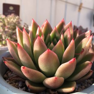 護国神社蚤の市でお迎えしました その13 蚤の市の最終日にも行って エケベリアを2株お迎えしました😊 上;エケベリア アップス(アプス) Echeveria aps 下;エケベリア アガボイデス ルメール Echeveria agavoides 'Lemaire' これからはエケさんの季節~😍😍😍 今夏は、我が家のエケさんは徒長したり 何年も居た子が☆になったりと散々でしたが これから手を加えてやり直します😁✨