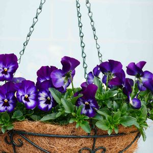 匍匐性パンジー ワンダーフォール・ブルーピコティシェードを、ハンギング仕立てにしました❣ 鉢から枝垂れるように咲く品種なのですが、今は鉢のフチにそって咲いていて、真ん中にお花が無くて、夏のペチュニア以来のザビエル状態ですっ😶💦 もっとたくさん植えてボリュームを出した方が良かったのかなぁ🤔 お花のサイズはこぶりなパンジーで、存在感あります💕