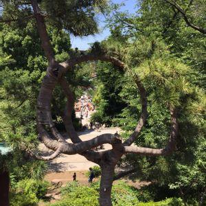 上野 寛永寺 清水観音堂 『月の松』 4年前に歌川広重の浮世絵に描かれた『月の松』を150年ぶりに復活させたそうです 覗くと不忍池の弁天堂が見えるなんて江戸っ子の粋な遊び心を感じます😊