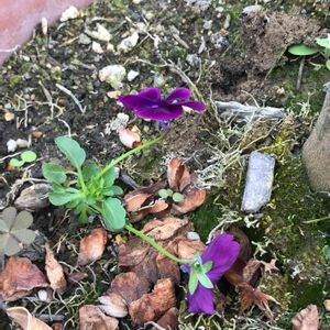 山茶花の鉢に、何処からか来た 小さな花🌸