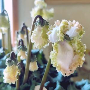 ラグジュアリーシクラメン アイスプリンセス 何故か上手に育てられなくて 写真って撮って無かった……… 蕾の時のフリル感が チュチュのよう ふんわり感が出るように 🤳駆使してパシャリ 婆さま頑張りました🤭😉