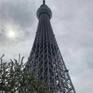 昨日の午前中、用事を済ませて出口を出た際に…。 スカイツリー🗼をビル越しで🌸桜とのコラボを撮りました♡ 晴れたらキレイに撮れたのにな〜残念。