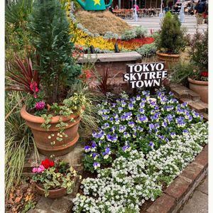 ① 今日、用事があって出掛けたので帰りに近く東京スカイツリー🗼に寄って見ました。 天気はあまり良くないけど… なんとか撮りました📱 お花💐とスカイツリー🗼とのコラボ♡