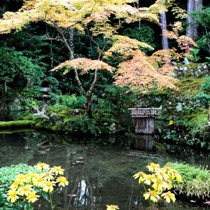 黄葉 澄み切った池の散りモミジと黄葉がいい感じです😊