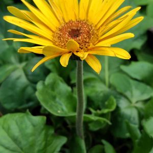 ※ガーベラ イエローwithアイ※ 4年前にモニターでいただいたガーベラです レッドは☆になってしまいましたが、イエローは株分けして2鉢になりました💛