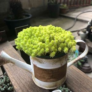 セダムがモリモリ! ただポット植えのものをのせてるだけ。 それだけでも可愛い💕 寄せ植えするには、とても映える黄色✨✨ いい仕事してくれてる😌 我が家のセダムもだいぶん大きくなったのもあれば 激減したものも、、、😭 ぼちぼちです🙌