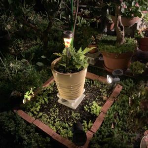 我家のセダム(黄金細葉万年草)を植えている場所が夏の雨と肥料のやり過ぎではげ頭の状態になりました。 よって中央にオリーブの木を植えている鉢を持ってきたら夜のライトが植木鉢に当たり綺麗になりました。 あとは黄金細葉万年草が隙間なく成長してくれるだけです。