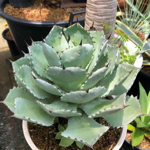 アガベ ポタトラム いつも行く園芸店でみっけ👀👀 アガベもいろいろな種類あるのね(*^ω^*) キャベツみたいな色で、ボーっと優しいイメージだけど、アガベさんはトゲトゲ🌵🦔で私の天敵😓💧💦