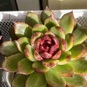 エケベリア・ブラックローズさんが 染まり出しました 😻💚💛❤️ 今は紅色で 何処がブラック😺❓ですが 冬はかなりブラックに近くなるので(というか 濃いパープル😸) このお色の時も貴重かと…😸💖