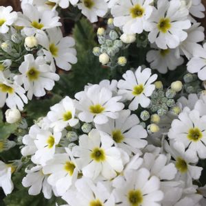 おはようございます🌱 2、3日前の晴天は 一転曇り空の東京 午後からは雨の予報 さくら草 雪にも負けず 霜にも負けず 綺麗に咲いてます Eaglesを聴いて 🌱いつもの電車🌱