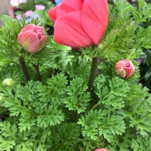 おはようございます🌱 空は明るく 陽射しはあるのに 青空がない東京 秋に球根を植えた ラナンキュラス ひょろひょろだけど たくさんのお色が かわいいです 小田和正さんを聴いて 🌱いつもの電車🌱 4月なのに夏日?