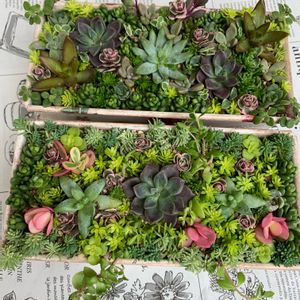 はじめての チマチマ植え💕 皆さんの 見様見真似でしましたが… 良いのかもわかりません😅 根無しです セダムは 摘んで直ぐ挿しました 一週間後に水やりでいいのかなぁ❓