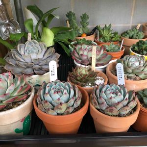 2020年もあと1.3ヶ月弱。 我が家にいる多肉植物たちのリストを計算してみたので、 属やある固まりで紹介していき、 最終的に何体生き残り、何体失敗したのか2020年の締めとして不定期で投稿していくシリーズ。 生死シリーズ2020(でタグ作成) セダム、チレコドン、クラッスラ、カランコエ、センペルビウム、ガステリア、ディッキア、アガベ、アリオカルプス、ティランジア、ガステラロエに続く第12弾は... エケベリア。 この間、二日間エケベリア縛りで投稿したばかりだというのに。 42/48 6体ダメだった。我が家の属別だと1番お亡くなりになっている。 †┏┛墓┗┓† ①アンギキュラータ(寒い時期の雨で成長点を傷めた) ②ロメオルビン(根が無い状態で水やりして腐った。水やりしたか実は覚えていない。傷みが激しかった) ③レインドロップ(梅雨辺りの雨ざらしで成長点などを傷めて復活出来ず) ④ラウイ(梅雨の時期に蒸れ、成長点を傷めた) ⑤美尼王妃晃(梅雨の時期に蒸れ、成長点を傷めた) ⑥恋情(梅雨の時期に蒸れ、成長点を傷めた) ( )内は死因や最後の状態など。 水絡みだね。 今年学んだから来年はもう大丈夫でしょう。 写真は、相府蓮、相生傘、ロメオ、フロリディティ、フランクレイネルト。この間登場させたばかり。しかもその時に撮影した写真を使うという手抜き(*´∇`*)ゞ エケベリアは今の時期になると欲しくなる。 ✂︎----------我が家のエケベリア-------------✂︎ ・はなうらら ・銀明色 ・ロジョー・ビジュー ・クリスマスイブ ・ルビーブラッシュ ・永遠の薔薇 ・氷雪 ・王妃錦司晃 ・紅大和 ・女雛 ・黒爪ザラゴーサ ・相府蓮 ・ブラックナイト ・ざくろ(ミニマ×フランクレイネルト) ・相生傘 ・ピンクルビー ・チワワエンシス ・ロメオ ・ビアント ・ベンバディス 💀アンギキュラータ ・エケベリア フロリディティ ・エケベリア フランクレイネルト 💀ロメオルビン ・ブルーサプライズ 💀エケベリア レインドロップ ・ストロベリーアイス ・ハルビンゲリ ・バイオレットクイーン 💀ラウイ ・メビナ ・※マッコス? ・※ラウリンゼ? ・ルブラ ・モヒカンスペシャル ・ザラゴーサエッジ ・紅化粧 ・ムーンストーン 💀美尼王妃晃 💀恋情 ・ブラックフラッシュ ・ファイアーリップ ・チワワエンシス ・※ハムシー ・マリーンサンセット ・レッドエッジ ・※マッコス ・名称不明、ご近所さんからいただきもの ※はダイソー産