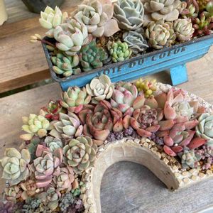 昨日、取り寄せてもらってたプランターが届いたので、ポリポットに入れっぱなしだったエケベリア達を植え替えました。 2段目に10個、ちょっと日が当たらないかな💦とも思いましたが、朝日は奥まで届いてたのでとりあえずしばらくこの並びで様子を見ます☺️