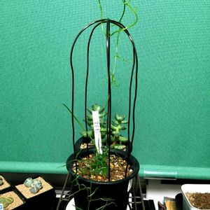 蒼角殿。 Bowiea volubilis モリモリガーデンさん作。 前回お尻クローズアップしたんで今回はこっちからも。 小っこいタマネギと鉢の雰囲気が可愛いらしい。