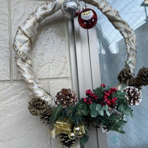 庭のへデラを使って、クリスマスリースを作りました。銀色のスプレーをかけ、マツカサなど木の実をゴールドのスプレーで、千日紅をあしらいました。地味かなとも思って、リボンをつけたリースもありますが、つけない方が好みです♪ 初めての取り組みで、雑な仕上がりで😅大変お恥ずかしいのですが、せっかく作ったので、投稿しました。