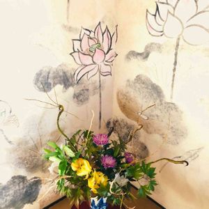 入口すぐお出迎え 屏風絵 [岩崎巴人作〕 花は えっと、 屏風絵と合う感じ✨