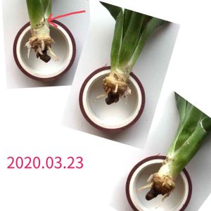 カキコかカットだったか。 お迎えしたときから根がなくて、冬の間に心配になり水耕栽培やらミズゴケでの発根を試みておりました。 根っこがニョキニョキ👀✨ よく見ると葉っぱを突き破ったり、間から発根しているものもあるではないですか⁉︎😳 根っこを救出すべく葉っぱを剥こうとしたら、パキ⭐️ 失敗(´༎ຶོρ༎ຶོ`) 中途半端に残りました。 無理せず取り外せるだけ2枚やってやめました。日陰で休ませて金曜日辺りにでも植え付けられたらいいかなと。