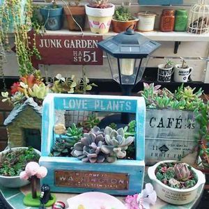 こんばんは🤗 今日は曇り空、 いつ梅雨入りするんだろう? そろそろ 梅雨や夏に向けて 対策を。 去年のカーポート下の棚があるから 去年ほどではないね。 jyoji67 さんの頂いた木箱🙌 うちで1番の桃太郎さん インパクト強く寄せ植えられました🎵 宝物が また多肉基地をまた素敵に してくれてます✨