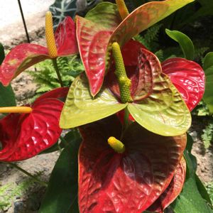 ❤️アンスリウム・アンドレアナム サトイモ科 アンスリウム属 別名:オオベニウチワ 花は茎頂に単生するか散房花序または円錐花序につく 花弁の基本数は5個であるが八重になるのも多い 仏炎苞は心臓形。革質で独特のエナメル質光沢があるそうです 分かりにくい説明ですみません
