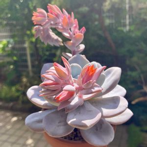 今日は気持ちの良いお天気でした🥰 朝日いっぱい浴びて、ラウィちゃん😍 手前はピンクラウィ🩷 2枚目 セダムアトランティス❣️ 寒くなって、元気になって来てます。 3枚目 札落ちして、名無しちゃん❣️ 葉っぱに赤いボツボツが😵💫 病気かな🙄 今日は水やり頑張りました🥰