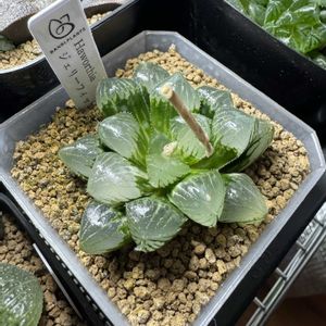 プラジャンでの2品目 H.splendens GM452 'Mary' サキュレントプランツジャーニーさん苗 自分にしては珍しく透明窓ではないタイプ 真っ白でムッチリしてるのに惹かれてしまいました😍