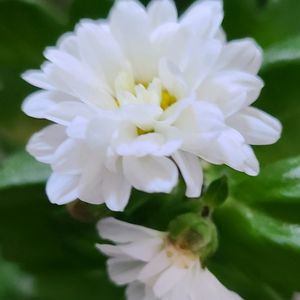 おはようございます。 春に、挿し木した菊に、 花が咲きました。 草丈20センチほど、小さな白い花が、咲いてました。