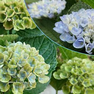 今日のお花 紫陽花・*:..。o♬*゚💠 マジカルレボリューション 小ぶりの一重の装飾花は花束💐のよう꒰* ॢꈍ◡ꈍ ॢ꒱.*˚‧ 💐💐💐がぎっしり詰まった手鞠咲きの花房は、 ロマンチックで、💠の名前通り、不思議な色合いを楽しめるアジサイなの✨ 装飾花は、ライムグリーンから、淡い黄色💛と青💙が混ざり合い、咲き進むと💜も現れてきます・*:..。o♬*💠 その後だんだん淡いグリーンへと変化を見せてくれます。 ちょっと、🌞😊🌞当たっちゃって日焼けしてしまいました😱 そろそろ✂️して、ドライフラワーになってもらいましょう(ღ*ˇᴗˇ*)。o♡
