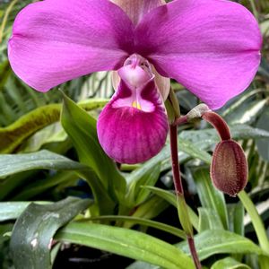 世界らん展で🌵連れて来ました😆リュックに沢山‼️ 右からDen は原種同士の掛け合わせでロディゲシーみたいに下茎で花は 濃ピンクです💮 直立してるDenは薄紫で房状な花が咲きます🌼 富貴蘭は斑が綺麗だったので✨ 今日一番はバルブだけの子 ブラックパールの花が連なる😱買ったのはバルブだけですが下の様に咲いて欲しい😱悪そうでいい感じです‼️右から順に4っです🙆分かって頂いたかな⁉️ お出かけはいいですね😆 (^-^)v