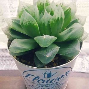 エンペラーというハオルチア お花屋さんで購入したものですがモリモリおおきくなって、10㎝越えしてます。鉢をかえないとー(笑) 他の方のエンペラー見たらうちの葉っぱ、ぺたんこだー! なんでー?