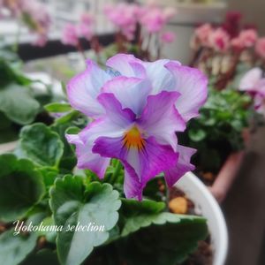 横浜セレクション ビオラ。 入荷が遅めとのことで、待ってました✨ このシリーズが大好きで、今年も楽しく悩んで、マイファニー・プリンセスにしました。 ほんのりブルーが入っているのですが、これまたシンデレラのドレスみたいな色に思え、お気に入りです。 フリルの具合も優しげでいい感じです。
