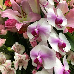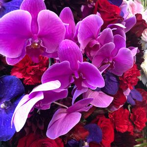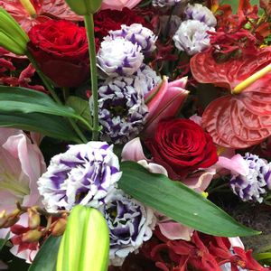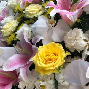 目がチカチカしそうなスタンド花💐(^^) デカイ繁華街の住人なんで結構見るよ‼️ ٩(^‿^)۶でも、スーツ着ての花撮りはちょっぴり恥ずかしい\(//∇//)\W