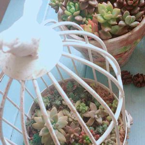 鳥かごオブジェ🕊 何かに使えるかと買い置きしてはや数年😂 思いきってカット✂したセダムなど挿してみました♬ 鳥かごのすき間からセダムが顔を出してくれるかな〜 (*´▽`*)🌿🌿 今日は朝から雨降り☔とても寒くて🥶 お部屋の中でちまちまやってました〜 伸び切った多肉植物ちゃんたちも まとめてみました(*´▽`*) 多肉棚もだいぶスッキリ🎶気持ちいい~