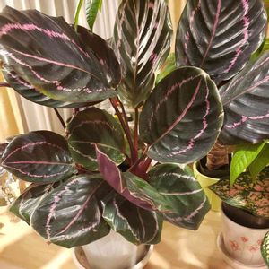 カラテア三姉妹をお迎えしました💕 奥の子、ピンクスターかと思ったらドッティさんでした!😂そっくりすぎ~😂😂 ベランダで復活したマコヤナさんも合わせて、カラテア系は4つ。 次はオルビフォリアを狙っています😎